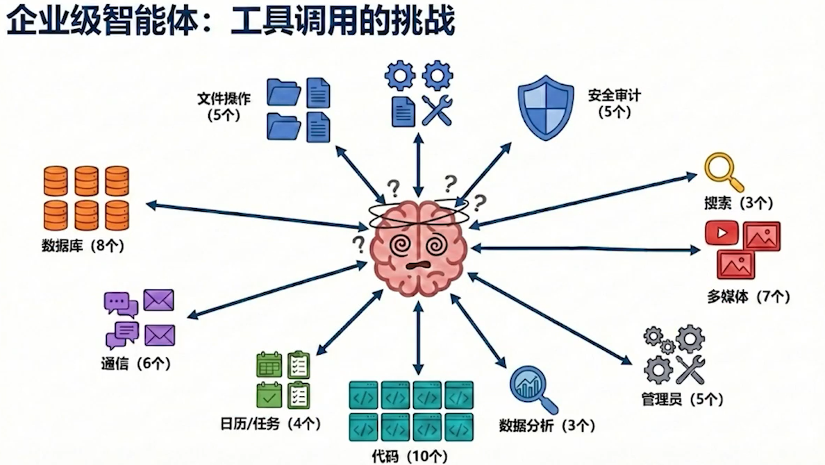LLM本质上是基于历史数据的概率预测系统,只能依赖训练时学到的旧知识来生成回答,无法获取训练之后的数据,工具系统让智能体能够执行 API 调用、数据库查询、文件操作等外部操作。