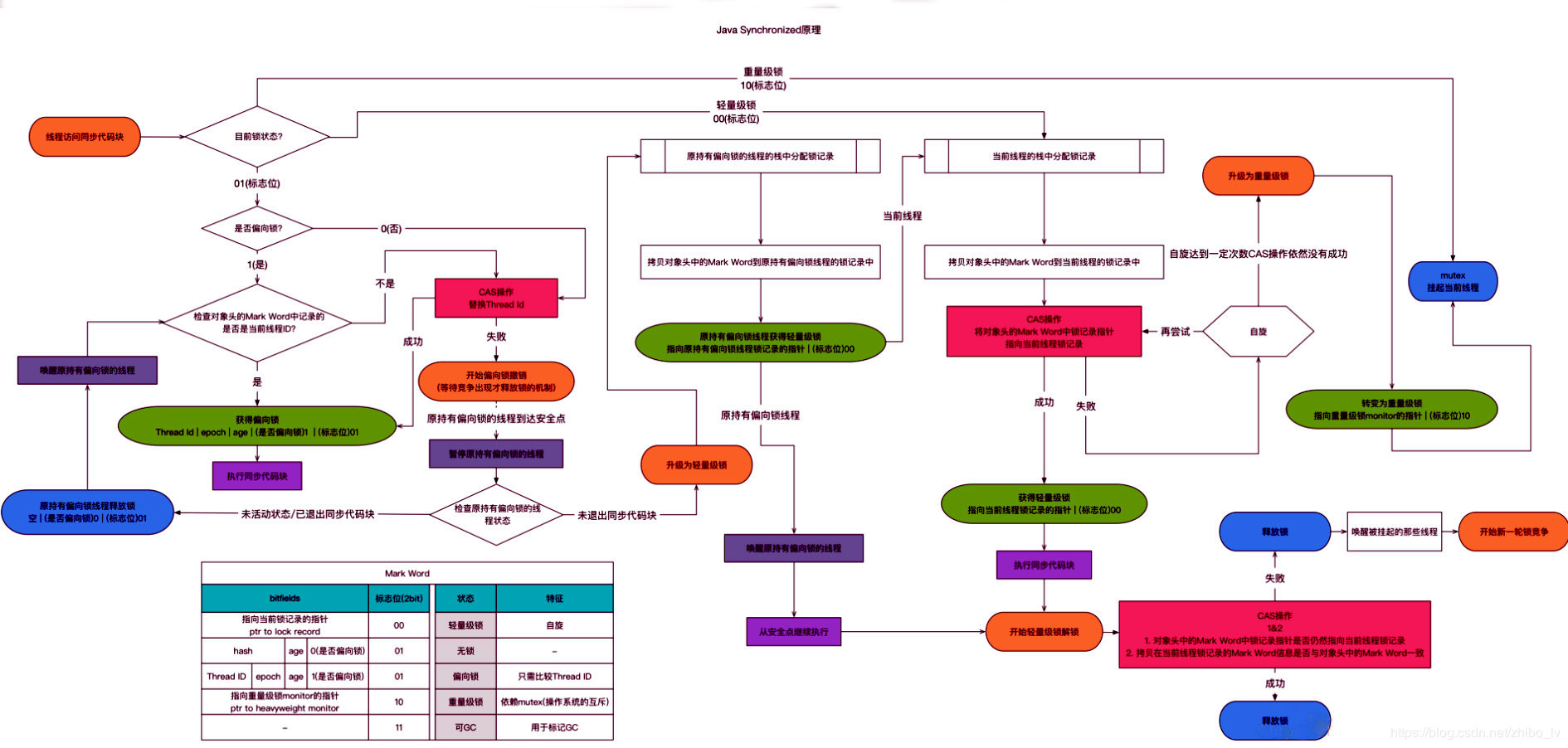 每个 Java 对象都可以关联一个 Monitor 对象,Monitor 也是 class,其实例存储在堆中,如果使用 synchronized 给对象上锁(重量级)之后,该对象头的 Mark Word 中就被设置指向 Monitor 对象的指针,这就是重量级锁